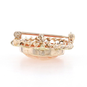 Gold Tone Carved Shell Cameo Art Deco Brooch - Vintage Silhouette Pin