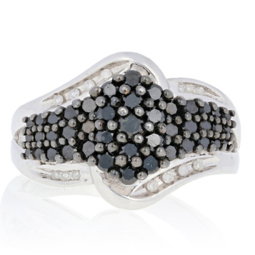 NEW 1.00ctw Single Cut Black & White Diamond Ring - Sterling Cluster Bypass