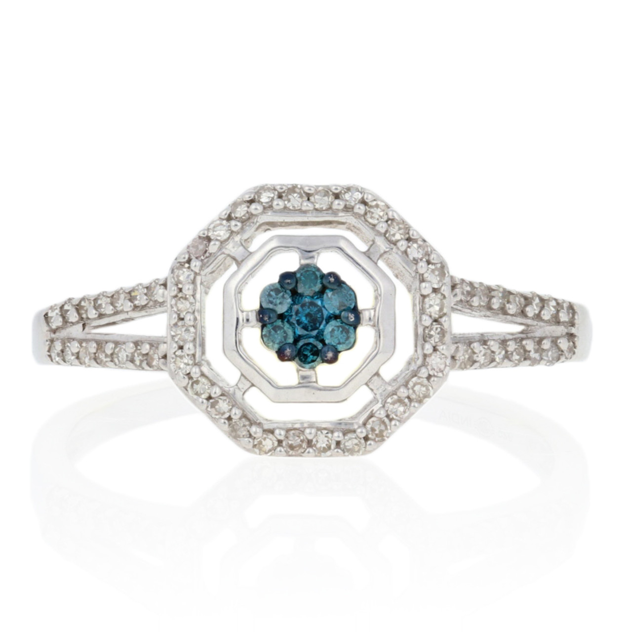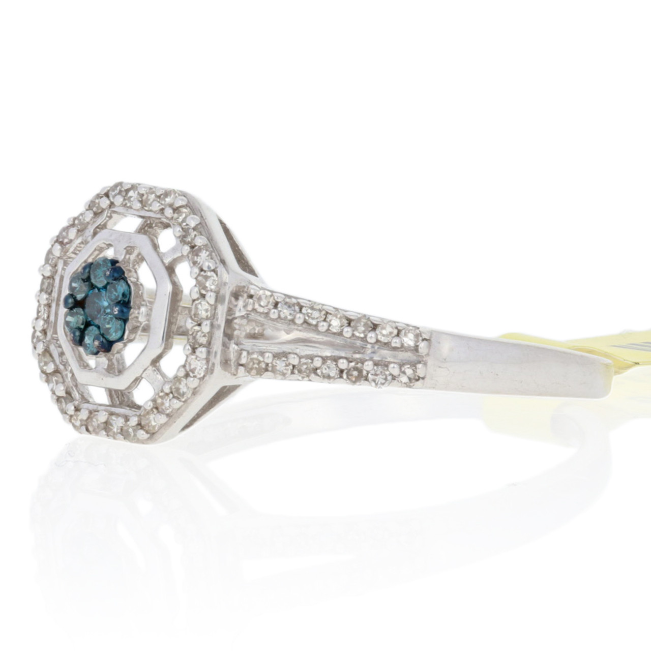 NEW .33ctw Round Brilliant & Single Cut Diamond Ring - Sterling Cluster Halo