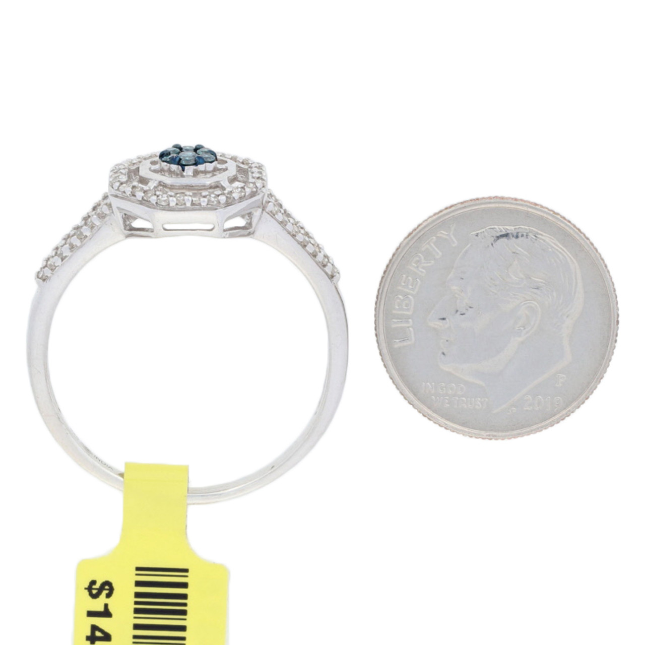 NEW .33ctw Round Brilliant & Single Cut Diamond Ring Sterling Halo Cluster