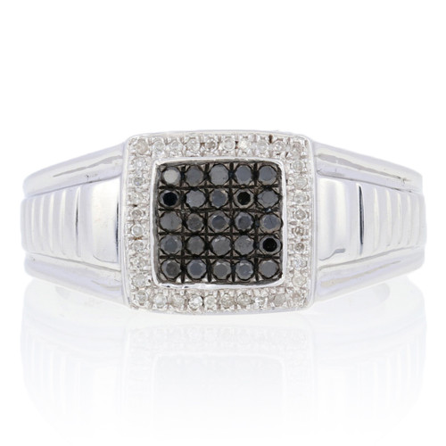 NEW .33ctw Single Cut Diamond Men's Ring - Sterling Silver Black & White Halo