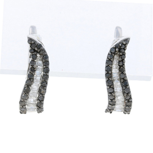 NEW .50ctw Baguette & Single Cut Diamond Earrings - Sterling Pierced J-Hoops