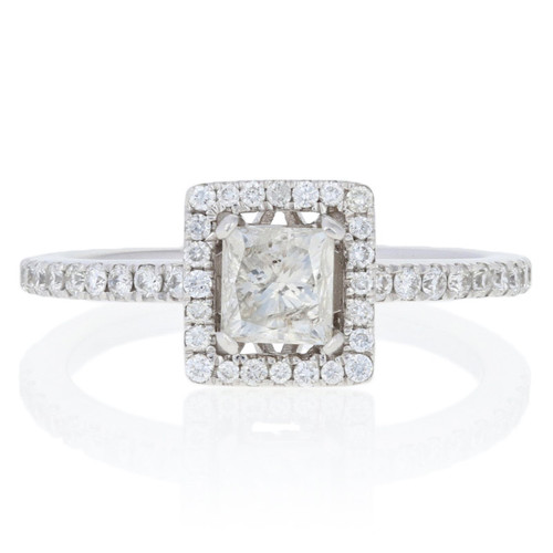 NEW .94ctw Princess Cut Diamond Engagement Ring - 14k White Gold Square Halo
