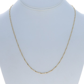 Quick view Wilson Brothers Jewelry Yellow Gold Twisted Serpentine Chain Necklace 20" - 18k Metal Content: 18k Yellow GoldChain Style: Twisted SerpentineNecklace Style: ChainFastening Type: Spring Ring ClaspMeasurementsLength: 20"Width: 1/16" (1.2mm)Front Width: 1/16" (1.2mm)Back Width:... MSRP: $899.99 Add to Wish List Compare