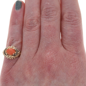 Quick view Wilson Brothers Jewelry Yellow Gold Coral Vintage Solitaire Ring - 10k Oval Cabochon East-West Size: 5Sizing Fee: Up 2 sizes for $40 or Down 1/2 a size for $40Era: VintageMetal Content: 10k Yellow GoldStone InformationNatural CoralCut: Oval CabochonStyle: SolitaireFeatures: East-West Set... MSRP: $479.99 Add to Wish List Compare
