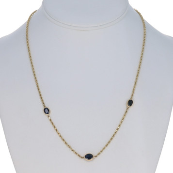 Quick view Wilson Brothers Jewelry Yellow Gold Sapphire Station Necklace 19 3/4" - 14k Oval 3.55ctw Rope Chain Metal Content: 14k Yellow GoldStone InformationNatural SapphiresTreatment: HeatingCarat(s): 3.55ctwCut: OvalTotal Carats: 3.55ctwChain Style: RopeNecklace Style: Chain StationFastening Type: Lobster... MSRP: $2,039.99 Add to Wish List Compare