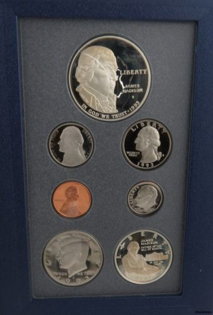 1993 Bill of Rights Prestige Proof Set 7pc COA Box Silver Dollar Commemorative