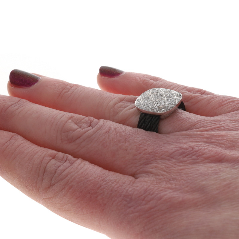 Charriol Celtic Noir Nautica Cable Diamond Ring Gold 18k Stainless Rd .36ctw Sz6