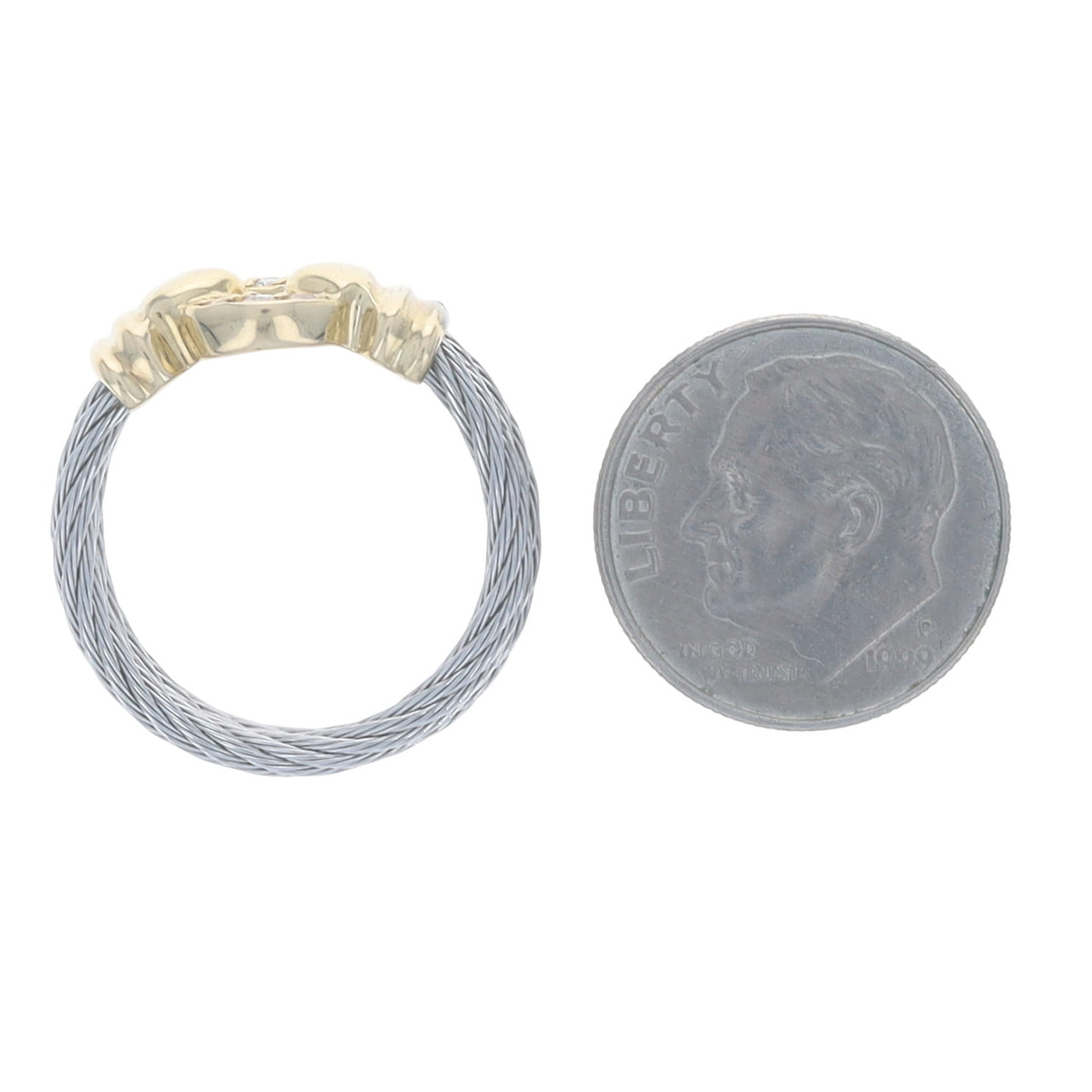 Charriol Diamond Ring - Stainless Steel Yellow Gold 18k Round Circle Buckle SZ 8