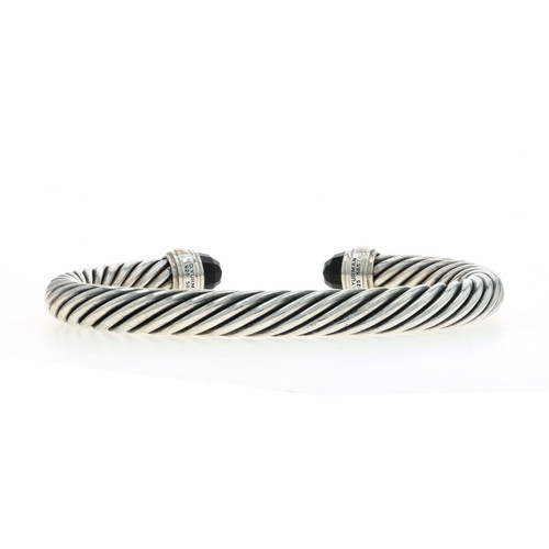 David Yurman 7mm Onyx Cable Bangle Bracelet 6 3/4" Sterling 925 Yellow Gold 14k