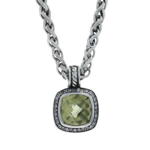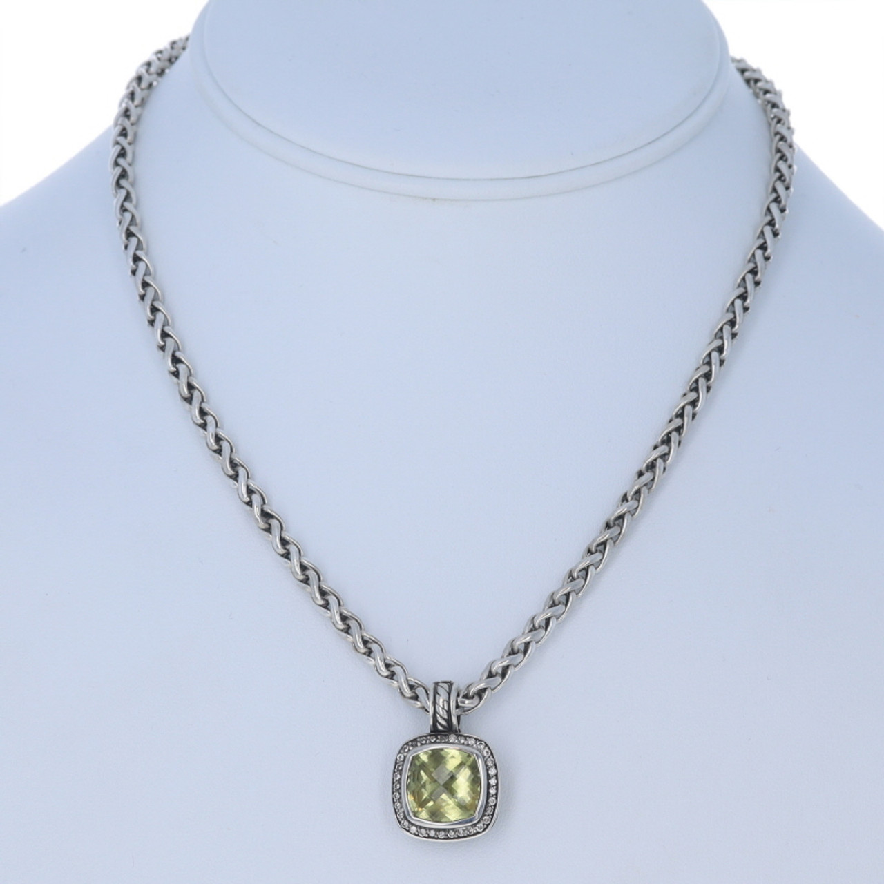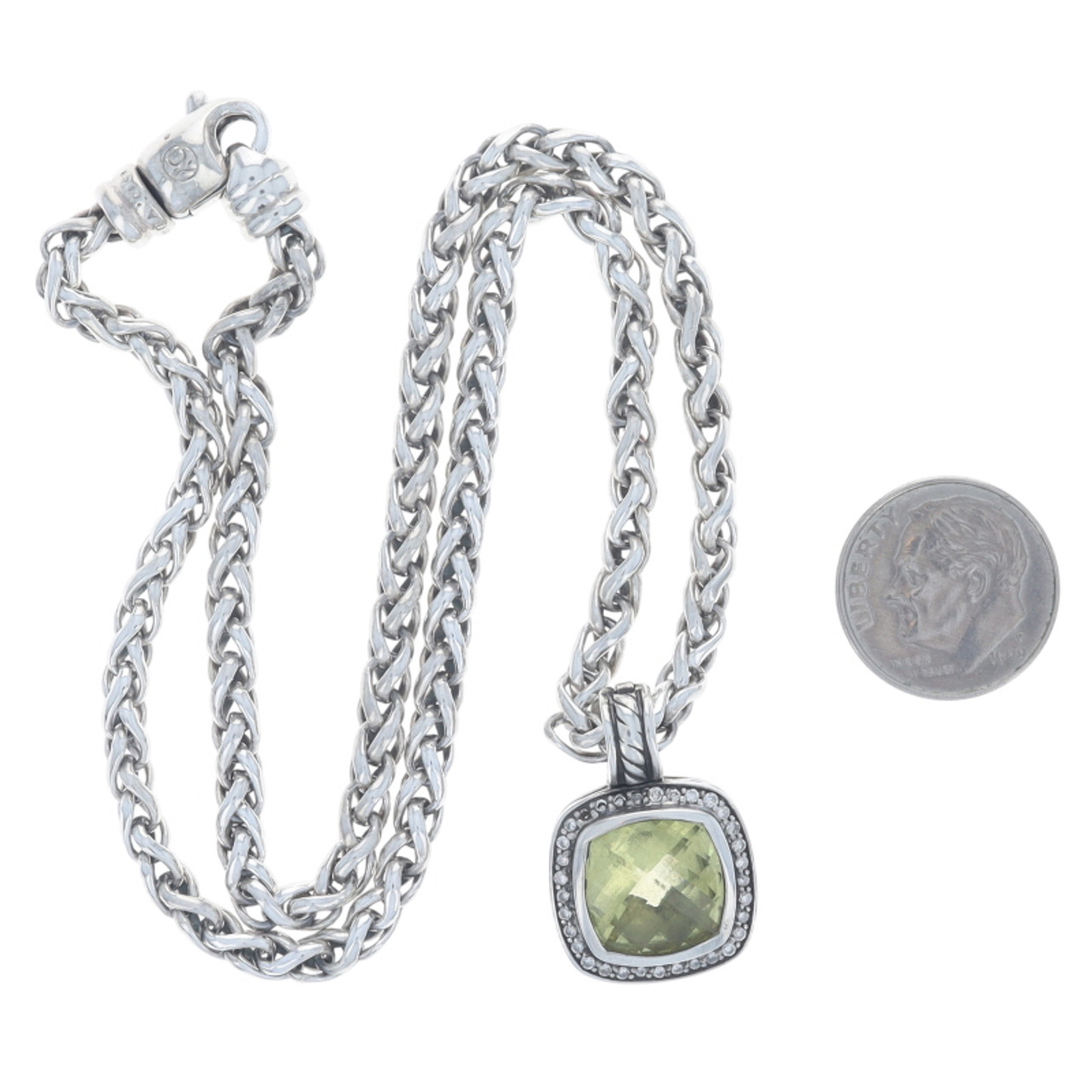 David Yurman Albion Peridot Diamond Enhancer Wheat Necklace 16" Ster 925 Cushion