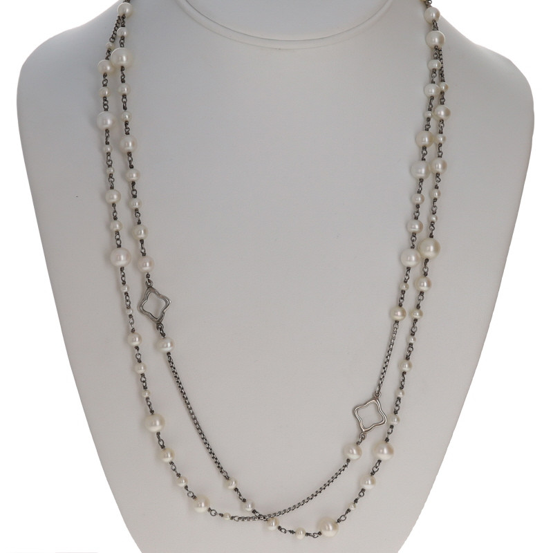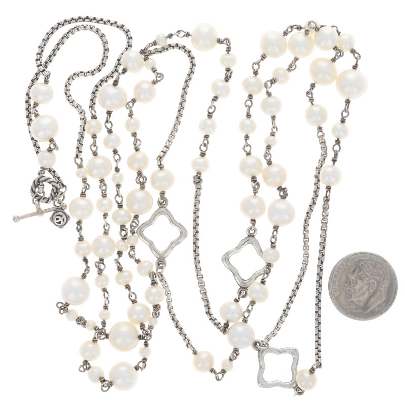 David Yurman Bijoux Quatrefoil Pearl Station Necklace 47 1/2" - Sterling 925