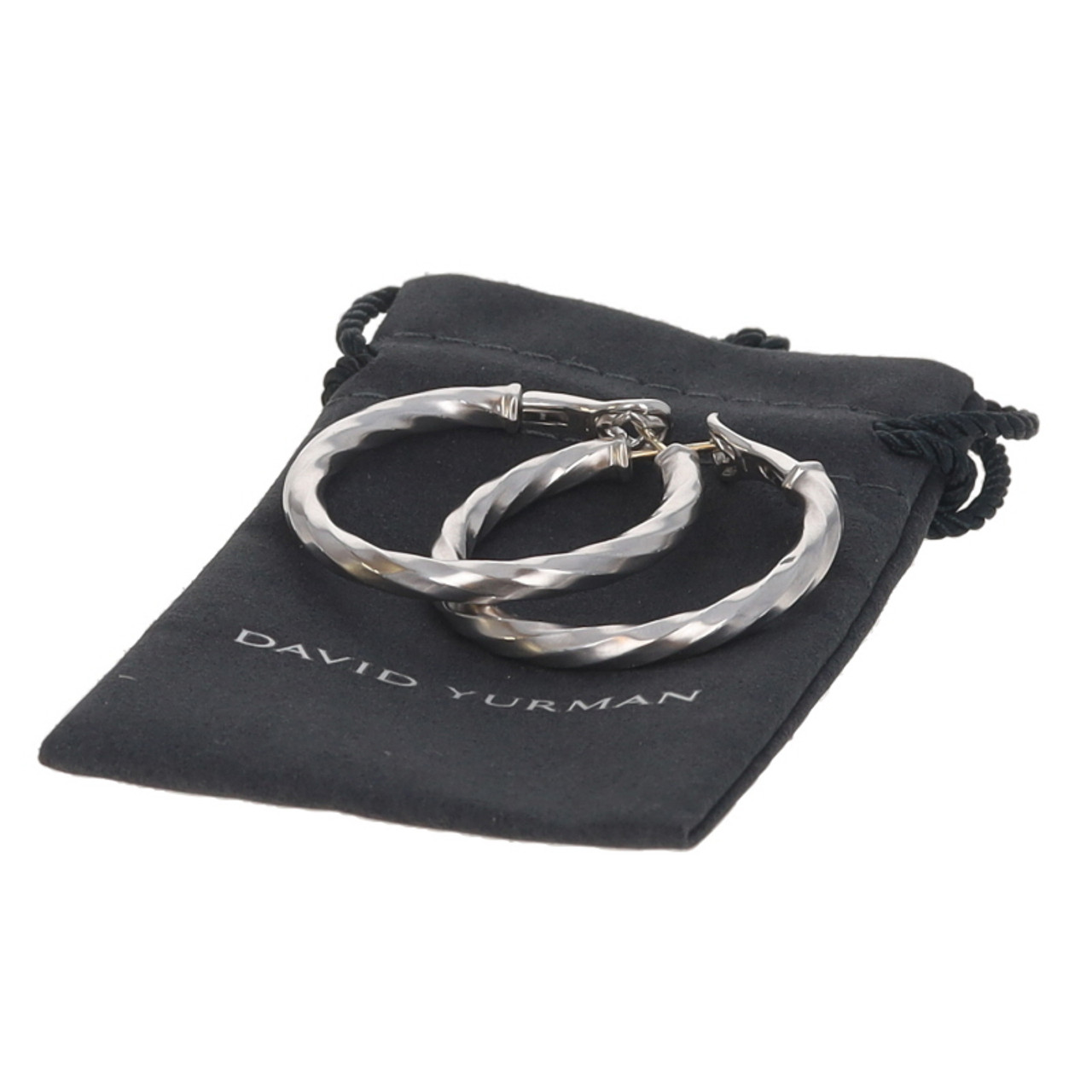 David Yurman Cable Edge Hoop Earrings - Sterling Silver 925 Yellow Gold 14k