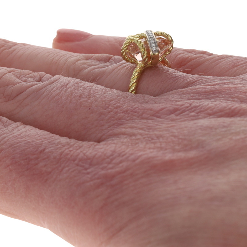 David Yurman Cable Wrap Morganite Diamond Ring Yellow Gold 18k Hexagon Sz 7 1/4
