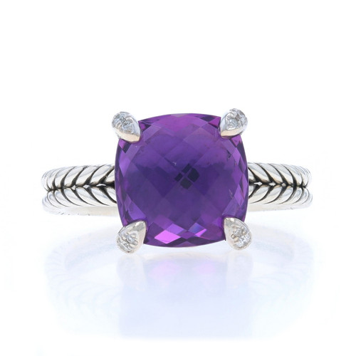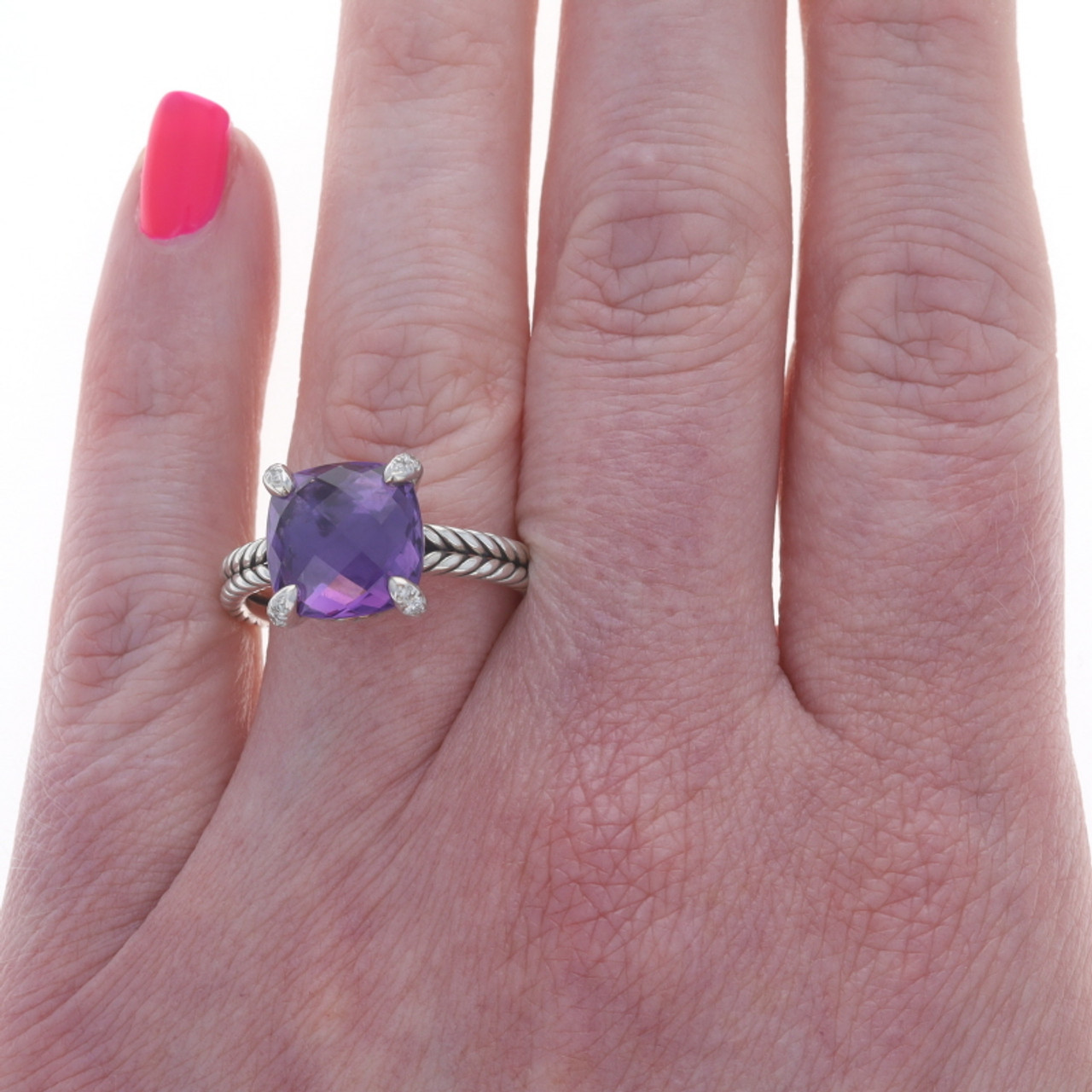 David Yurman Chatelaine Amethyst Diamond Solitaire Ring Sterling Silver 925