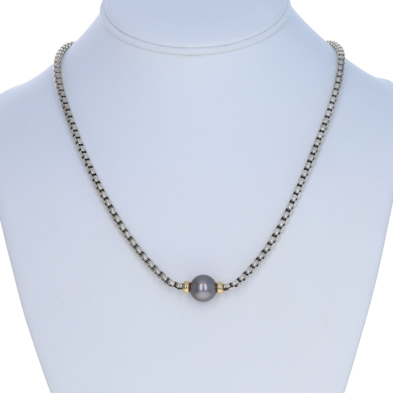 David Yurman Tahitian Pearl Solitaire Necklace 20" Sterling 925 Yellow Gold 18k