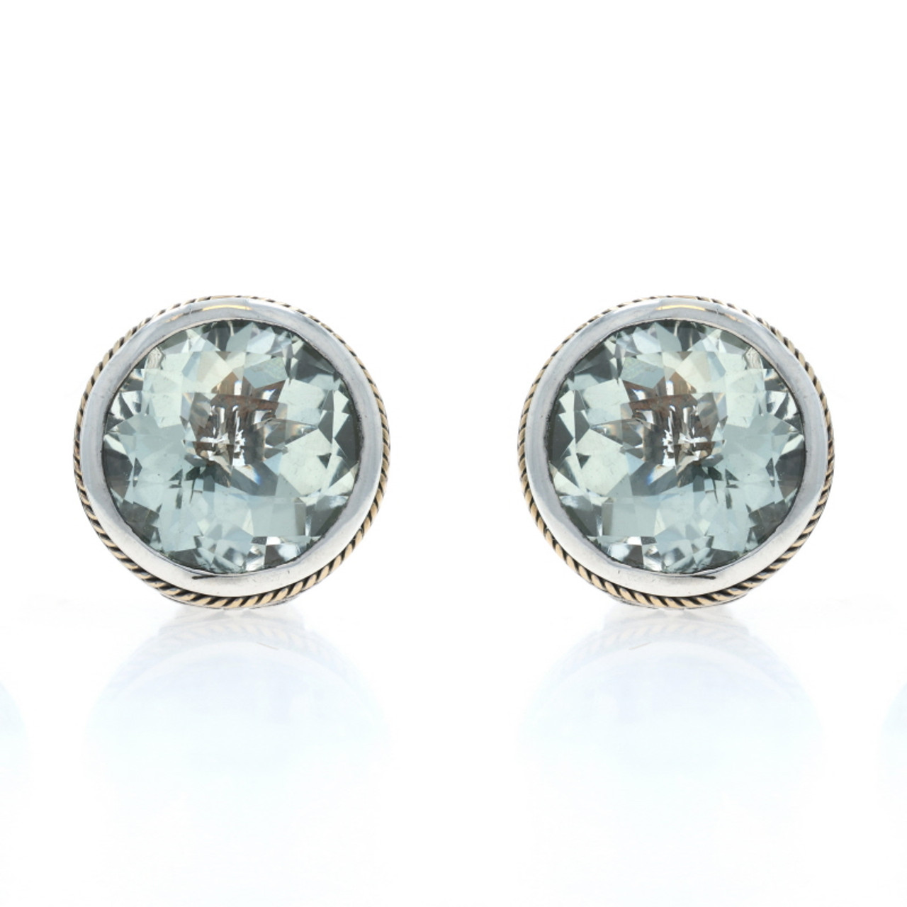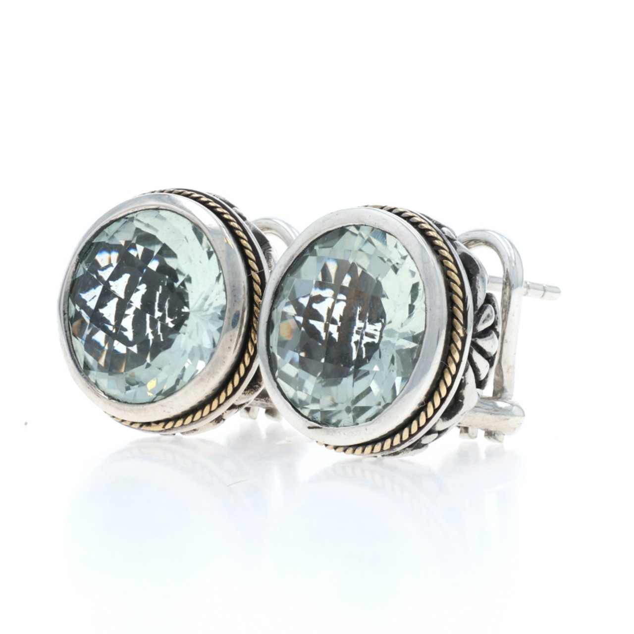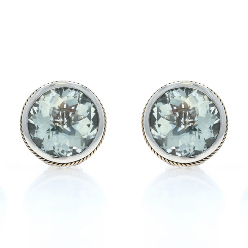 EFFY Green Amethyst Large Stud Earrings Sterling 925 Gold 18k Portugese 12.00ctw