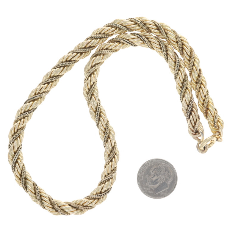 Gold Filled Vintage Rope & Foxtail Twist Chain Choker Necklace 14" - 1/20 12k