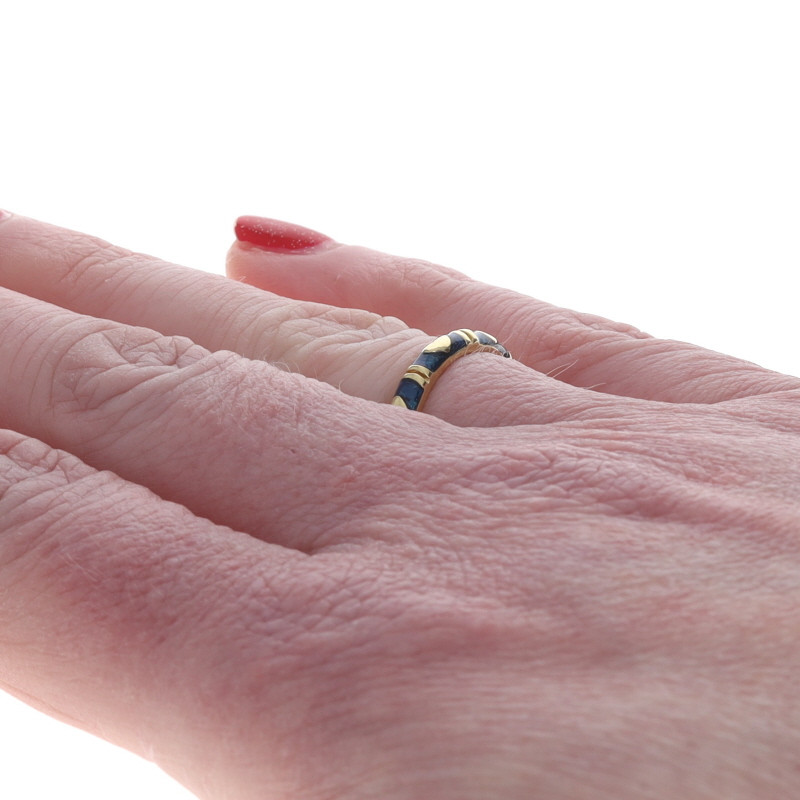 Hidalgo Heart Eternity Band - Yellow Gold 18k Love Blue Enamel SZ 6 1/2 Ring