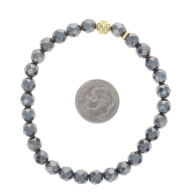 Lagos Caviar Icon Station Hematite Bracelet 7 1/2" Yellow Gold 18k Faceted Beads