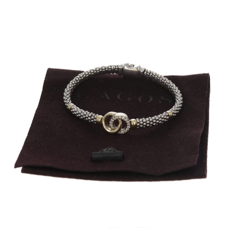 Lagos Signature Caviar Interlocking Circle 6mm Dia Bracelet 7.5" 925 18k .22ctw