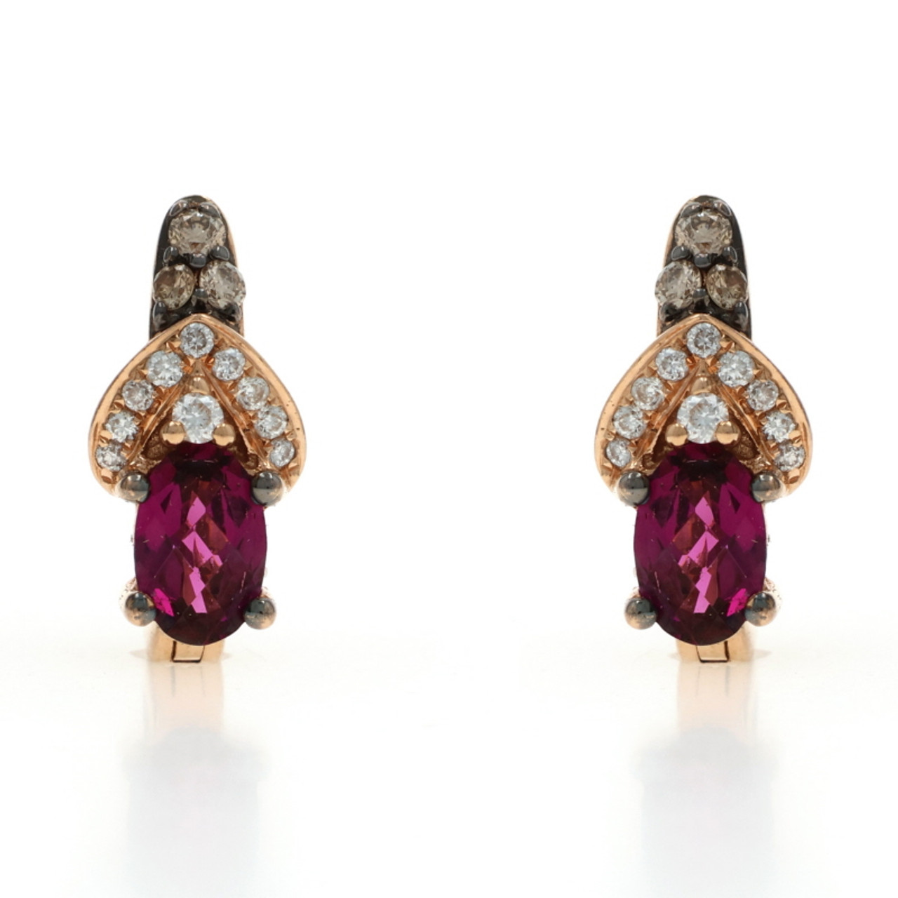 Le Vian Raspberry Rhodolite Garnet Diamond J-Hoop Earrings Rose Gold 14k 1.32ctw