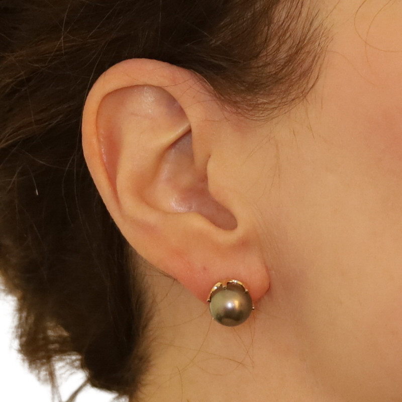 Maui Divers Tahitian Pearls Stud Earrings - Yellow Gold 18k Pierced