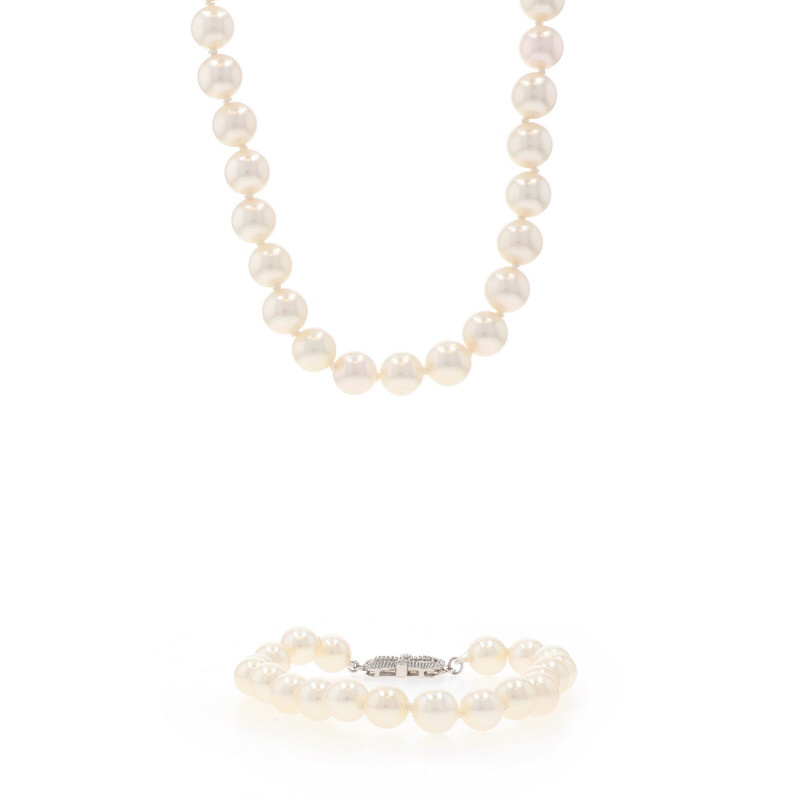 Mikimoto Sea Magic Pearl Knotted Strand Necklace & Bracelet Set - White Gold 14k