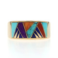 Native American Calvin Begay Navajo Turq Coral Lapis Band - Yellow Gold 14k Ring