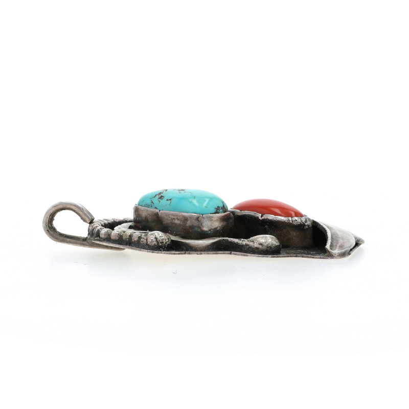 Native American Navajo Sterling Silver Turquoise Coral Pendant - 925 Two-Stone