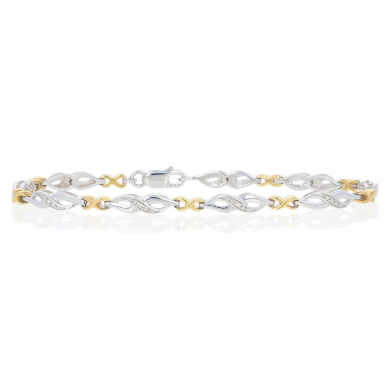 NEW Single Cut Diamond-Accented Bracelet 7 1/4" Silver &14k Gold
