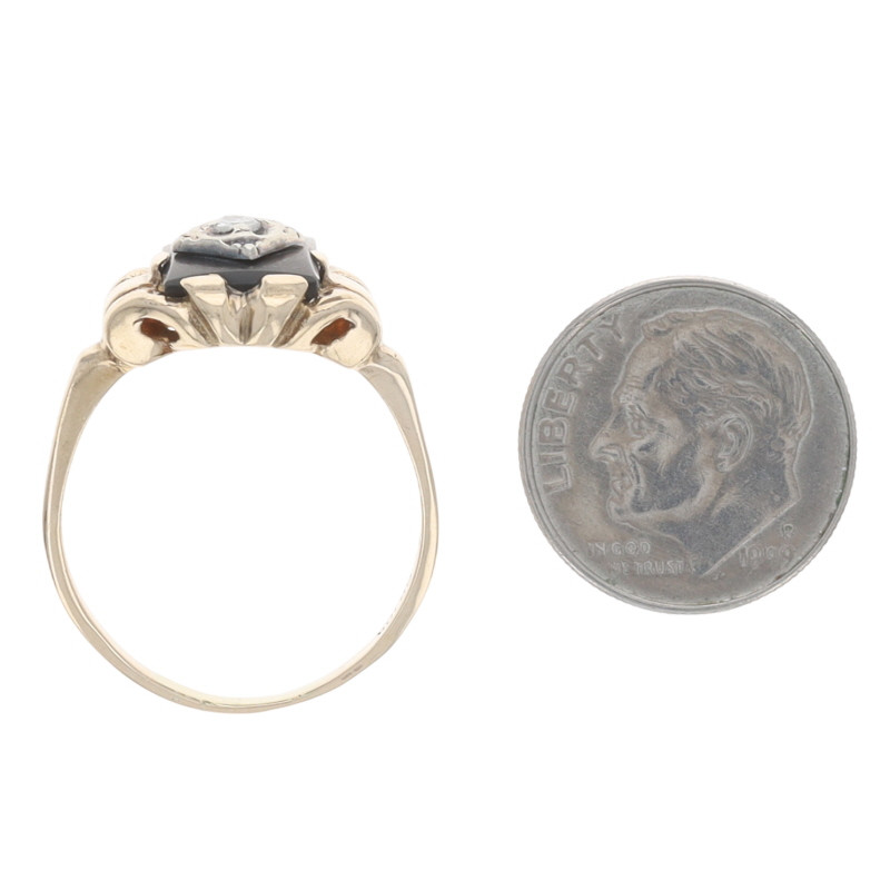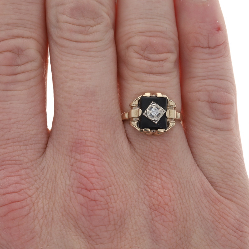 Ostby & Barton Diamond Onyx Art Deco Ring - Yellow Gold 10k Single .11ct Vintage