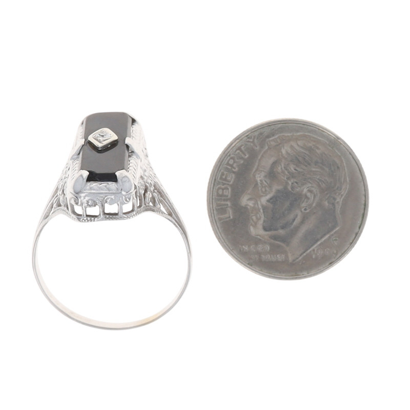 Ostby & Barton Onyx Diamond Art Deco Ring - White Gold 14k Vintage