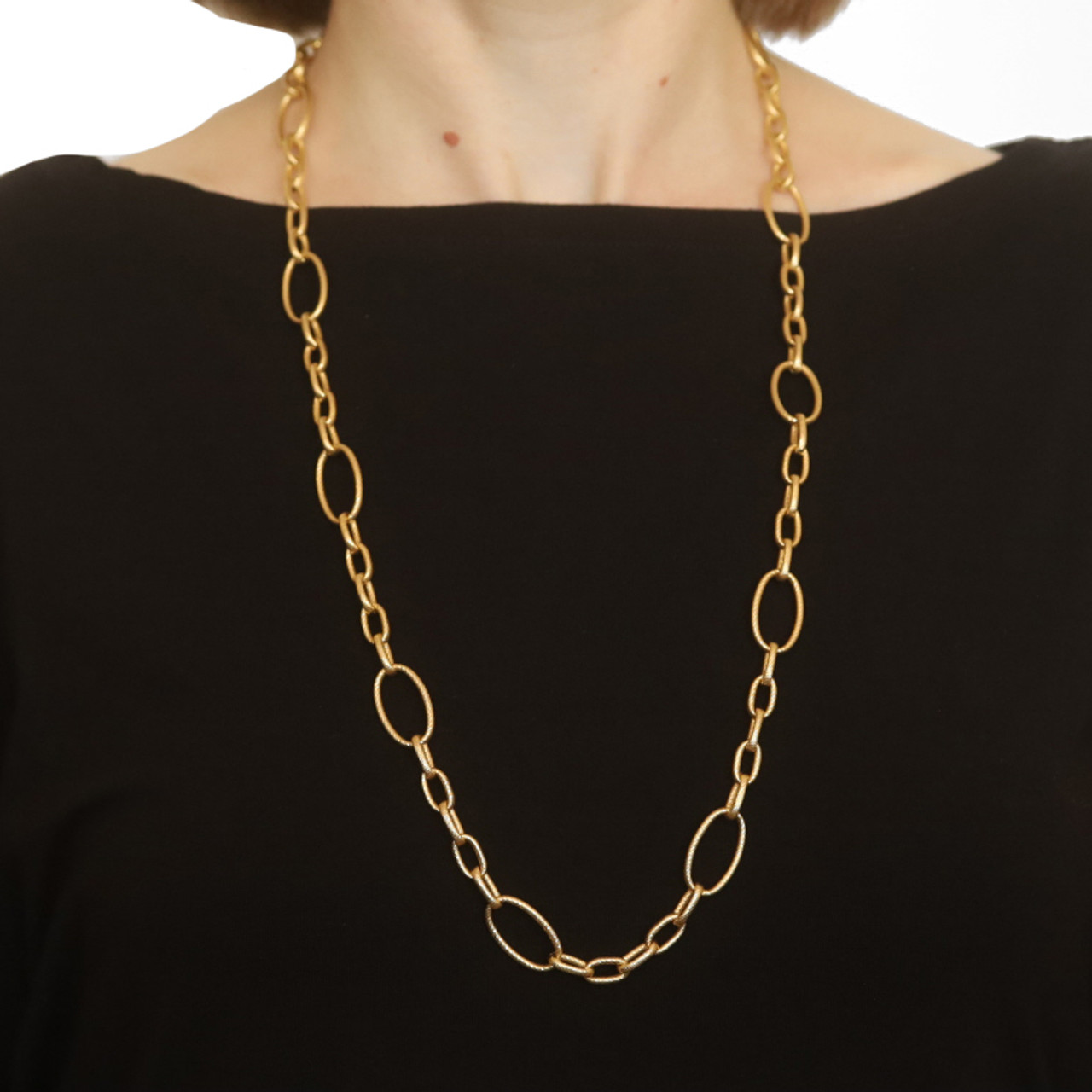 Roberto Coin Textured Oval Toggle Sapphire Dia Necklace 28 1/2" Yellow Gold 18k