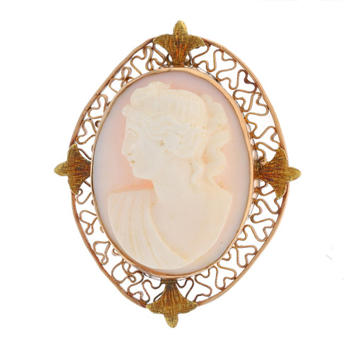 Rose Gold Shell Art Deco Convertible Brooch/Pendant - 10k 10k Cameo Vintage Pin