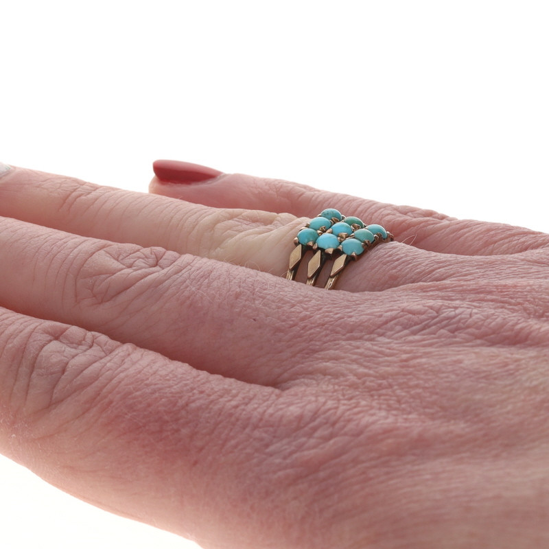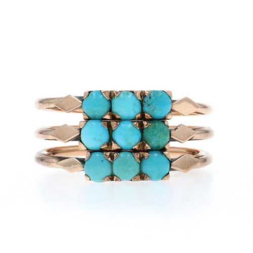 Rose Gold Turquoise Victorian Cluster Cocktail Ring 12k Cabochon Antique 5 3/4