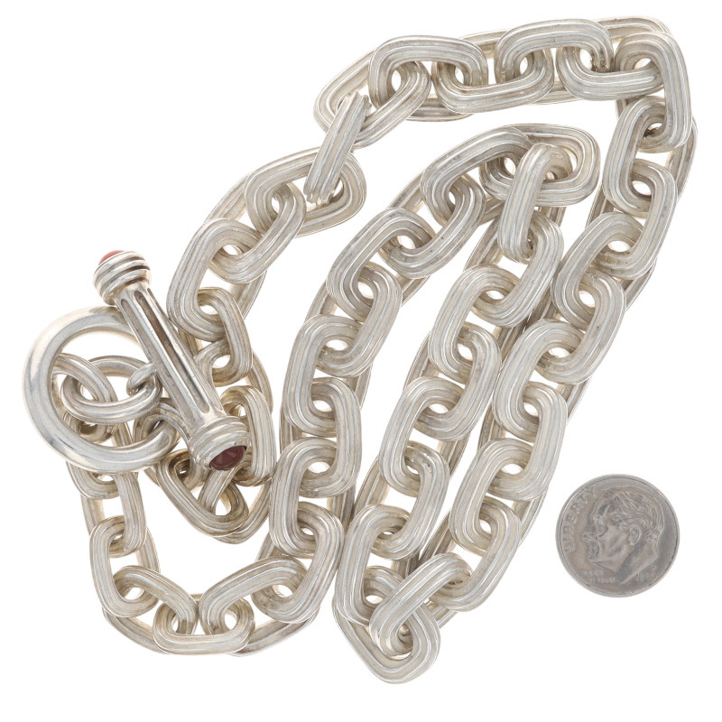Slane & Slane Carnelian Fancy Cable Chain Necklace 20" Sterling 925 Rd Cab