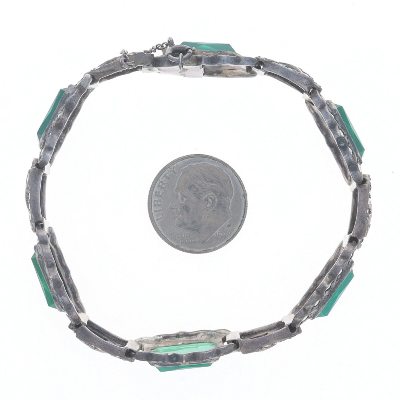 Sterling Silver Green Chalcedony Marcasite Link Bracelet 6 1/2" -925 Rectangular