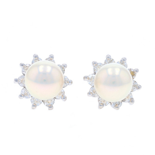 White Gold Akoya Pearls Diamond Halo Studs 14k .80ctw Pierced