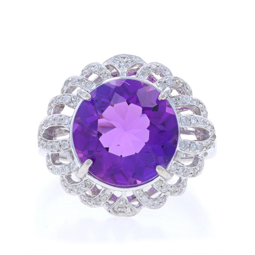White Gold Amethyst Diamond Halo Ring - 14k Round 3.85ctw