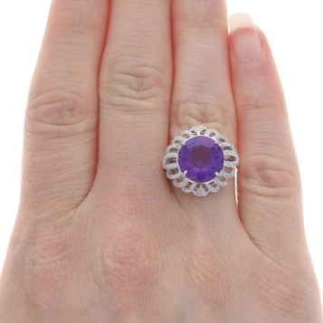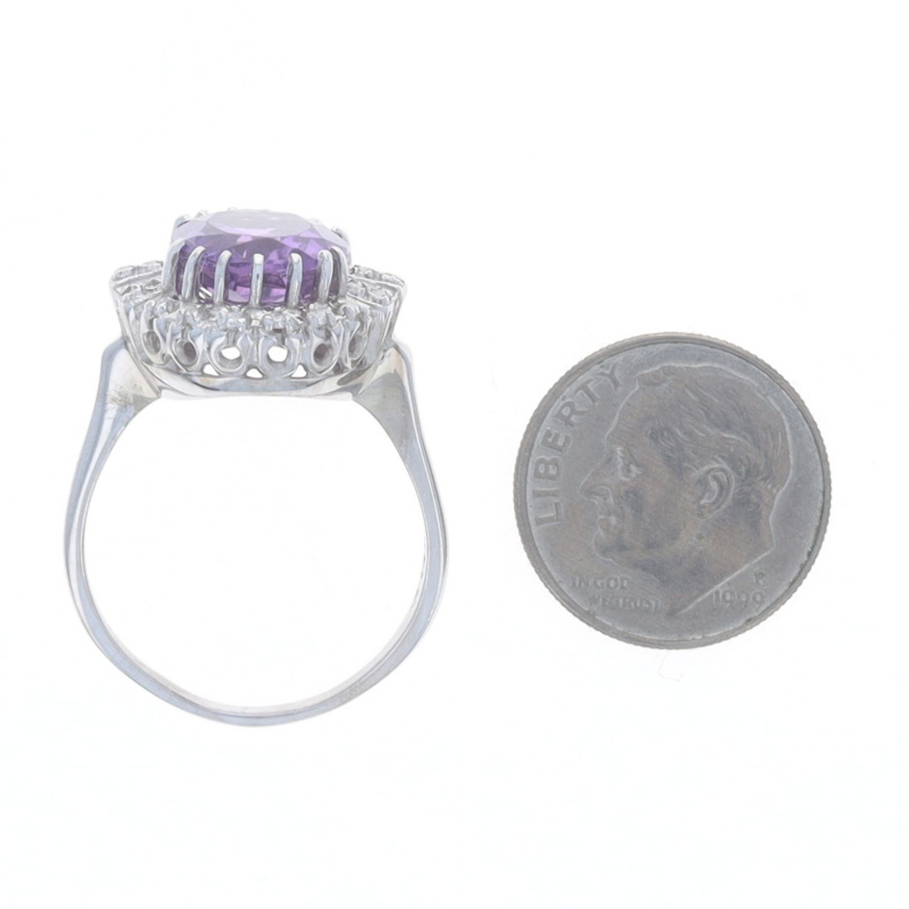 White Gold Amethyst Diamond Vintage Halo Ring - 14k Oval 4.64ctw