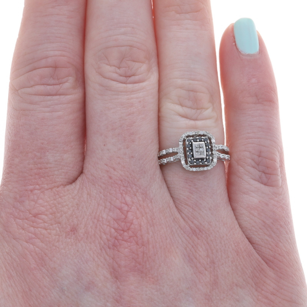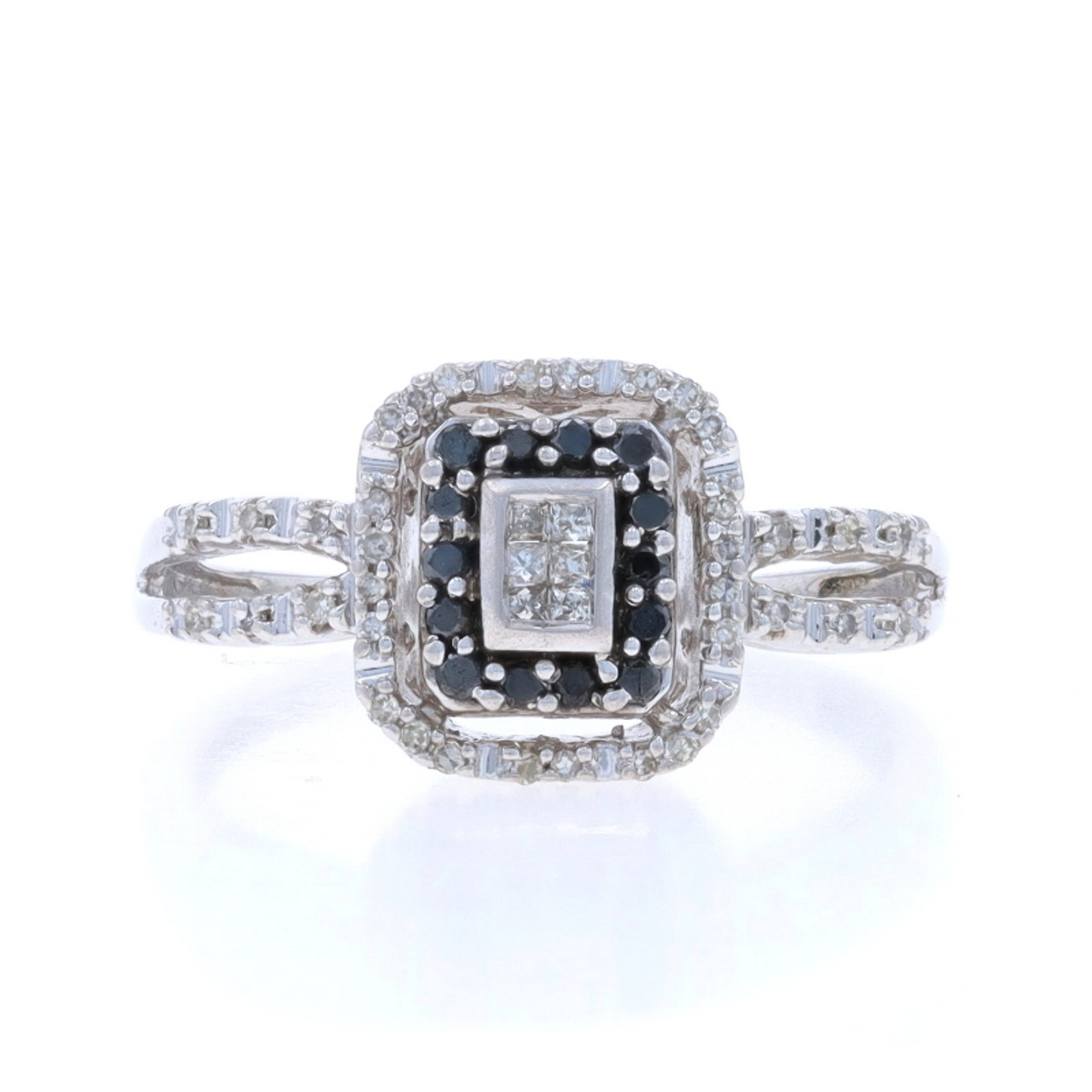 White Gold Black Diamond Cluster Halo Ring 10k Princess & Round .33ctw Treated