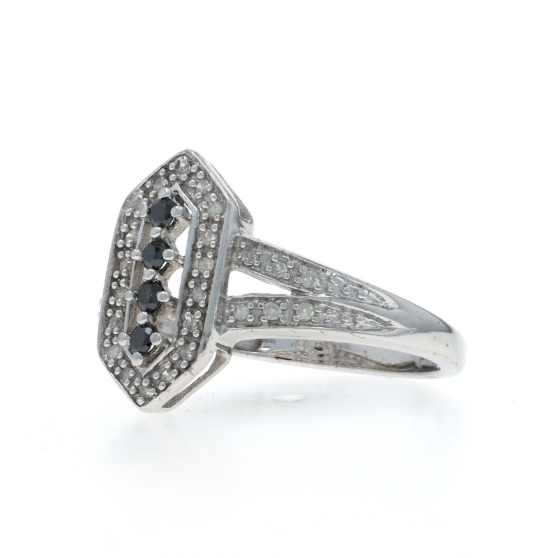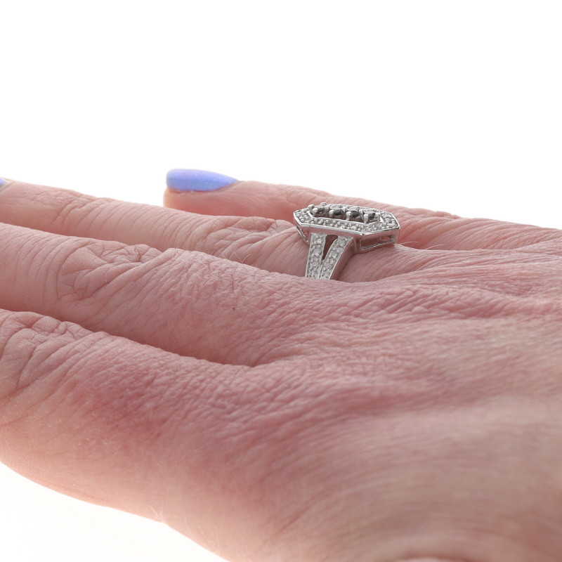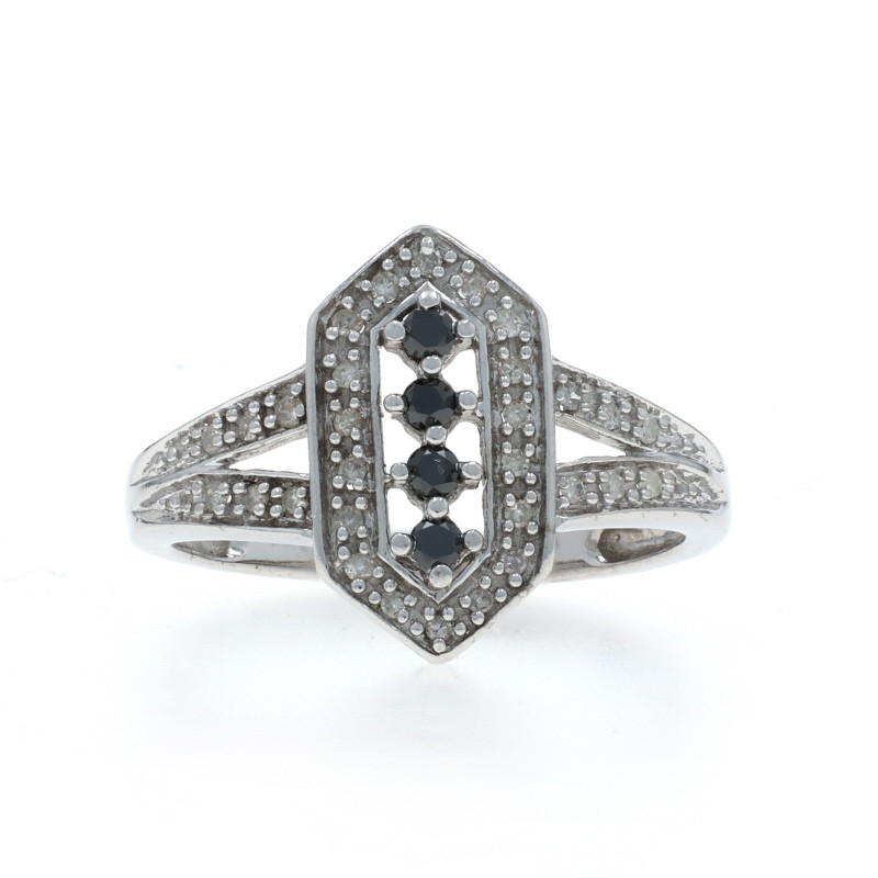 White Gold Black Diamond Halo Ring - 14k Round Brilliant & Single .25ctw Treated