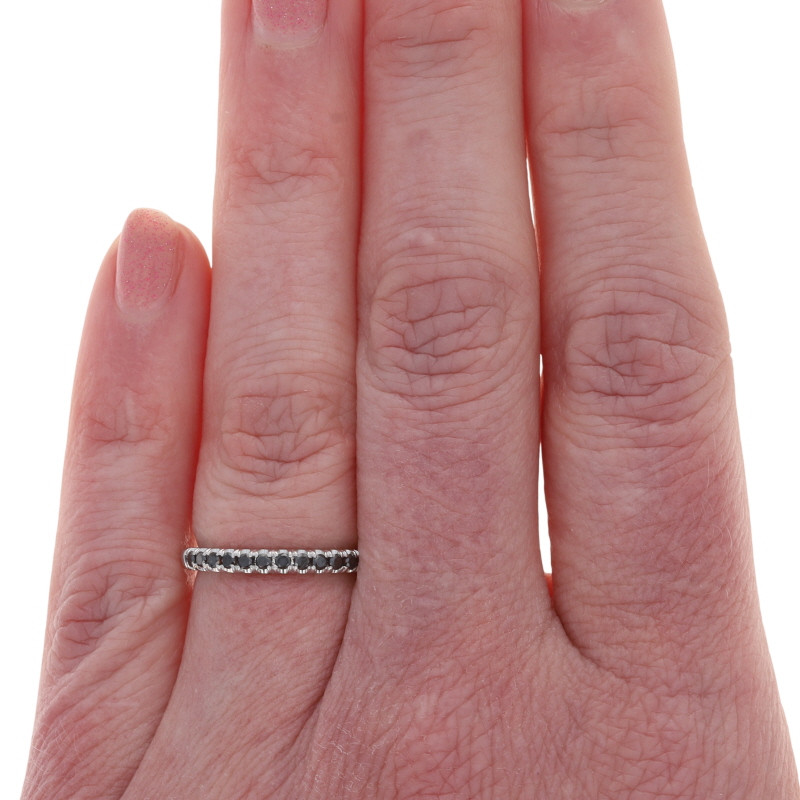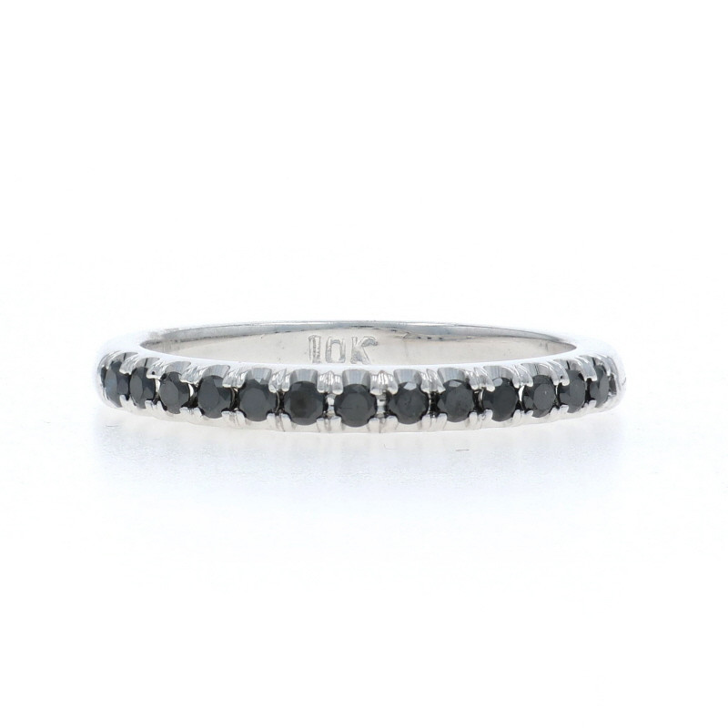 White Gold Black Diamond Wedding Band - 10k Round Brilliant .26ctw Ring Treated