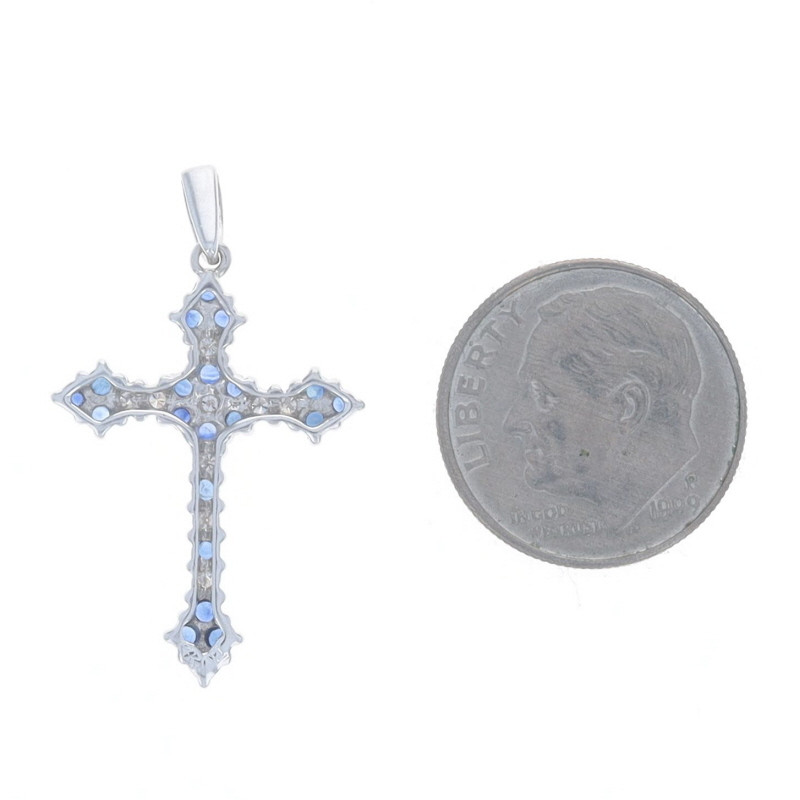 White Gold Blue Sapphire Diamond Cross Pendant - 14k Round .71ctw Faith