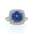 White Gold Blue & White Lab-Created Sapphire Halo Ring - 14k Cushion 5.70ctw