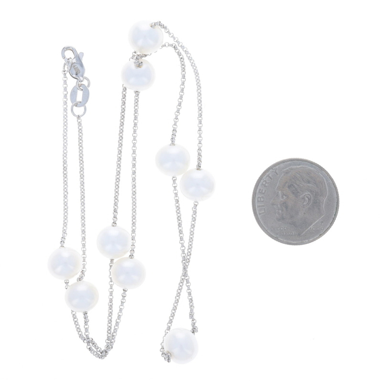 White Gold Cultured Freshwater Pearls Station Necklace 17 3/4" 14k