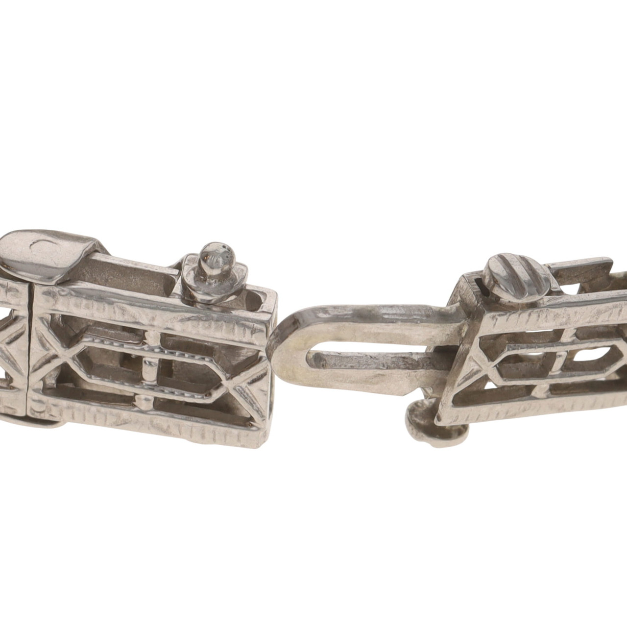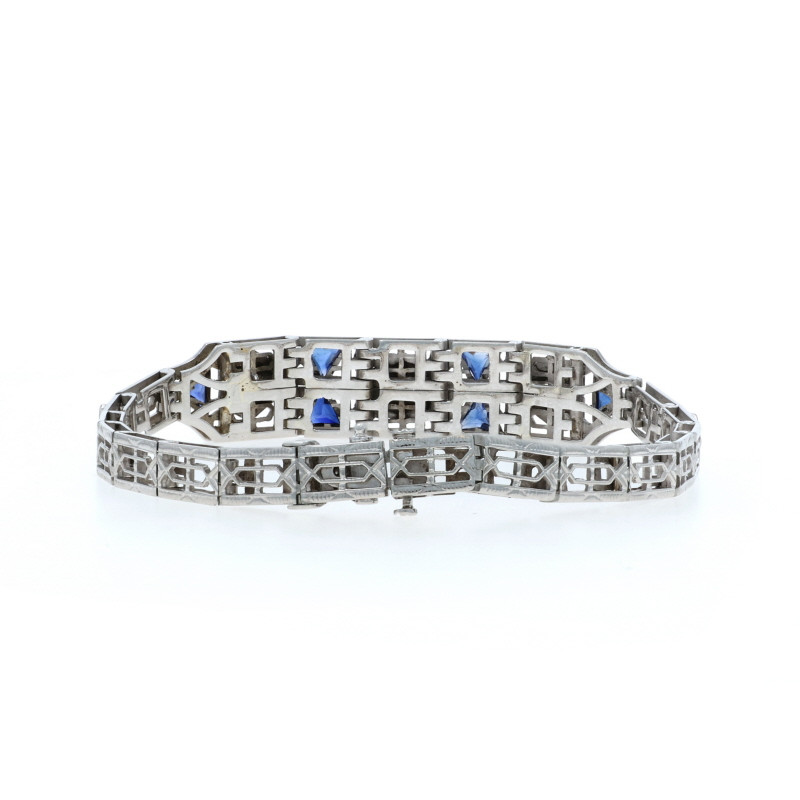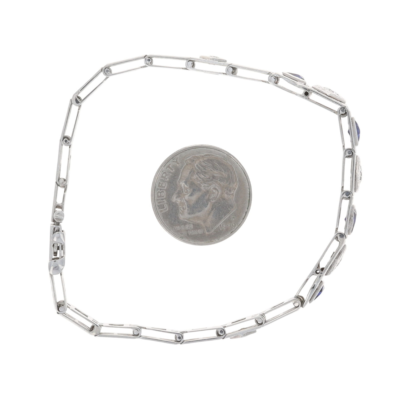White Gold Dia Lab-Created Sapph Art Deco Link Bracelet 6 1/2" - 18k Euro .51ctw