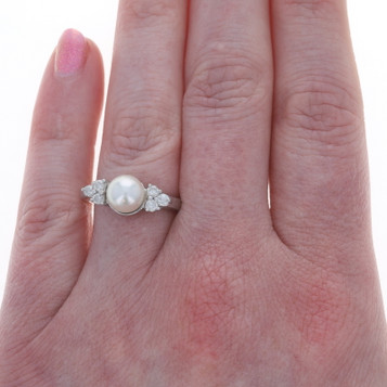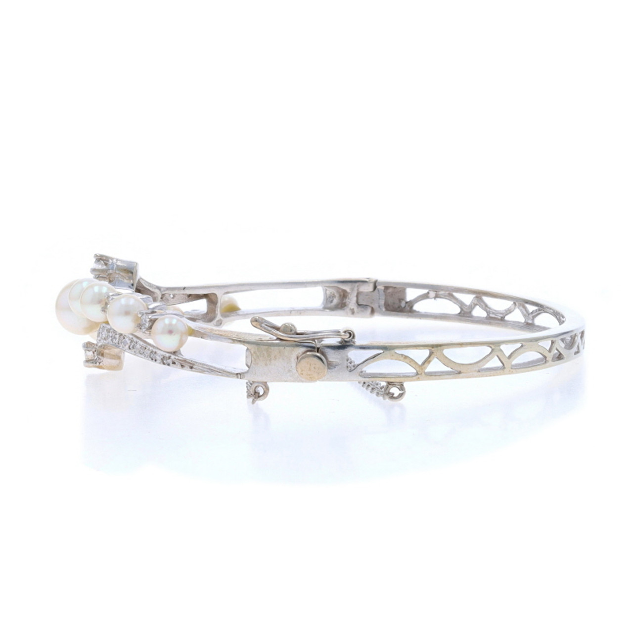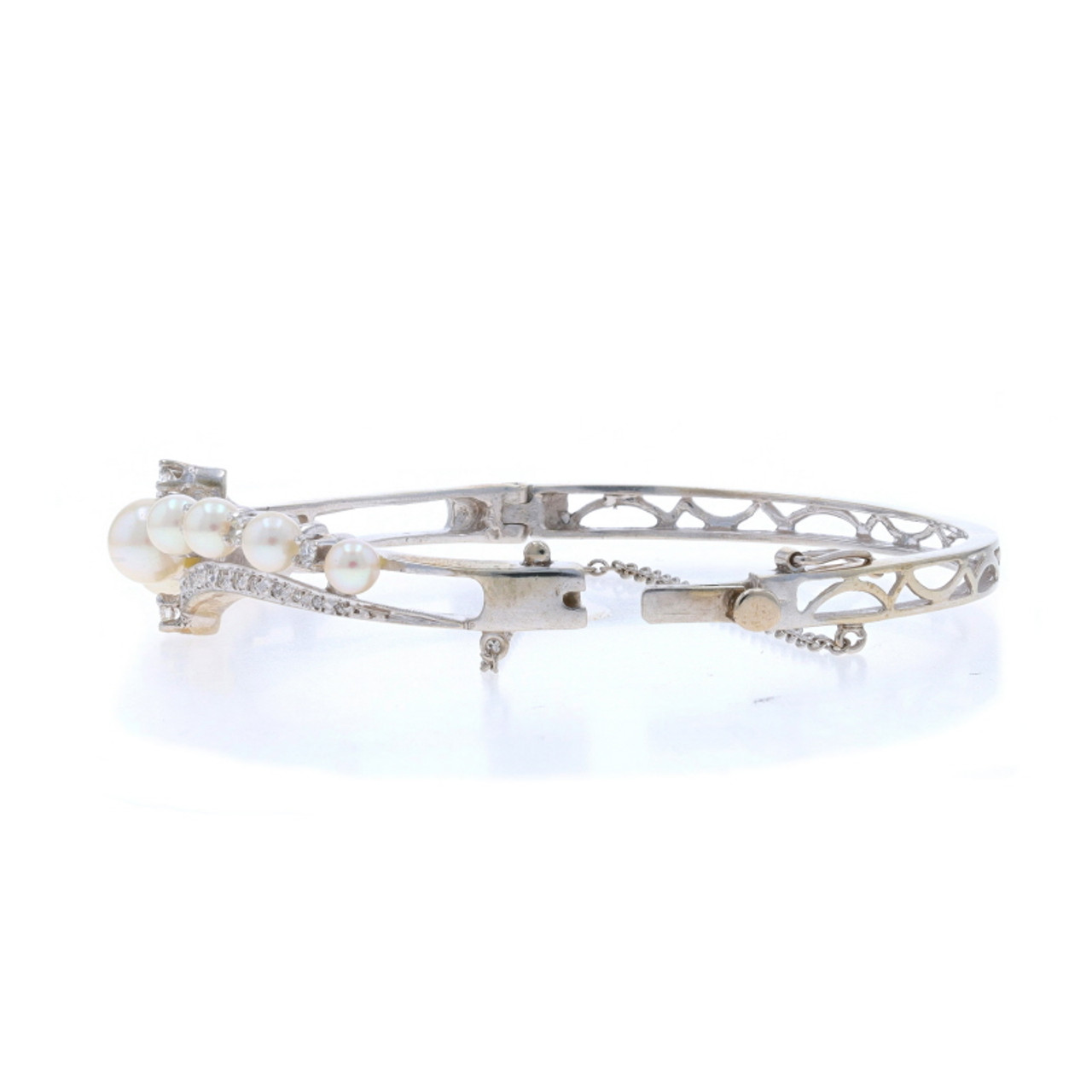 White Gold Diamond Akoya Pearls Bracelets 6 1/4" 14k Round & Single 1.08ctw Set