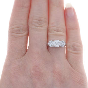 White Gold Diamond All-In-One Cluster Halo Engagement Ring - 10k Rnd 1.00ctw